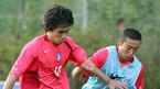 아드보카트 신임 감독이 이끄는 한국 축구대표팀이 소집 이틀째인 8일 오전에 이어 오후에도 훈련을 소화했다. 오후 훈련서 실시한 연습게임 도중 박주영(왼쪽)이 상대 수비수 김영철 옆으로 공을 빼자 뒤에서 이호와 조원희(