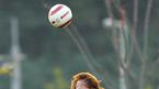 아드보카트 신임 감독이 이끄는 한국 축구대표팀이 소집 이틀째인 8일 오전에 이어 오후에도 훈련을 소화했다. 오후 훈련서 가진 연습게임 중 안정환이 백헤딩하면서 몸을 뒤로 젖혀 볼을 쳐다보고 있다./파주=주지영 기자 jj0jj