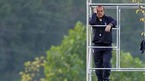 아드보카트 신임 감독이 이끄는 한국 축구대표팀이 소집 이틀째인 8일 오전에 이어 오후에도 훈련을 소화했다. 오후 훈련서 아드보카트 감독이 코칭스태프용 간이 철제 망루에 올라 연습경기를 내려다 보고 있다./파주=주지영