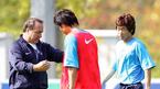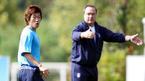 아드보카트 신임 감독이 이끄는 한국 축구대표팀이 8일 오전 10시 반부터 파주 NFC에서 소집 이틀째 훈련에을 실시했다. 박지성이 지시대로 슛을 날리자 아드보카트 감독이 잘했다며 격려하고 있다./파주=주지영 기자 jj0jj0@osen.co