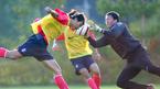 아드보카트 신임 감독이 이끄는 대표팀이 10일 오후 파주 NFC 트레이닝 센터에서 소집 4일째 훈련을 실시했다. 몸을 푸는 게임 도중 박지성이 웃음을 참지 못하고 있다./파주=주지영 기자 jj0jj0@osen.co.kr [Copyright ⓒ OSEN(www.osen.co.kr)