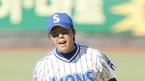16일 삼성 라이온즈와 두산 베어스의 한국시리즈 2차전서 삼성 선발 배영수가 1회초 2사 2루에서 두산 4번 타자 김동주를 삼진으로 잡고 주먹을 불끈 쥐며 환호하고 있다./대구=손용호 기자 spjj@osen.co.kr [Copyright ⓒ OSEN(www.osen.co.kr)