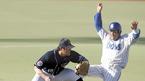 16일 대구 야구장에서 벌어진 삼성 라이온즈와 두산 베어스의 한국시리즈 2차전 삼성의 5회말 무사 1,2루서 박진만의 보내기 번트 때 두산 투수 랜들의 재빠른 송구로 2루주자 김한수가 3루서 포스아웃되고 있다./대구=손용호 기