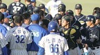 16일 대구구장에서 열린 삼성과 두산의 2005프로야구 한국시리즈 2차전 도중 흥분한 양팀 선수들이 모두 그라운드에 몰려 나오는 일촉즉발의 상황이 연출됐다. 0-1로 뒤지던 삼성이 동점을 만든 7회말 공격, 2사 1루에서 조동찬이
