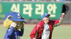 16일 삼성 라이온즈와 두산 베어스의 한국시리즈 2차전에 세계정신지체장애인 수영선수권대회에서 금메달을 딴 김진호가 시구를 했다. 시구를 마친 김진호가 기분이 좋은듯 마구 뛰어 나가자 진갑용이 시구한 공을 전달하기 위