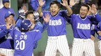 18일 잠실 구장서 벌어진 두산 베어스와 삼성 라이온즈의 한국시리즈 3차전 삼성의 8회초 2사 1,2루서 양준혁이 우측 펜스를 넘어가는 홈런을 터뜨려 4-0을 만들자 덕아웃에서 동료들 열렬히 환영하고 있다./잠실=손용호 기자 spjj@o