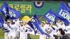 19일 잠실 구장에서 벌어진 한국시리즈 4차전서 삼성이 두산에 10-1로 대승, 4전 전승으로 우승을 차지하자 선수들이 환호하며 그라운드로 뛰어 나오고 있다./잠실=주지영 기자 jj0jj0@osen.co.kr [Copyright ⓒ OSEN(www.osen.co.kr) 무단전재
