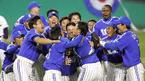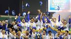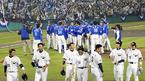 19일 잠실 구장에서 벌어진 한국시리즈 4차전서 삼성이 두산에 10-1로 대승, 4전 전승으로 우승을 차지한 삼성 선수들이 마운드 주변에서 기뻐하는 반면 힘 한 번 제대로 못쓰고 주저앉은 두산 선수들은 맥없이 덕아웃으로 들어