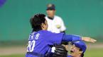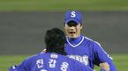 19일 잠실 구장에서 벌어진 한국시리즈 4차전서 삼성이 두산에 10-1로 대승, 4전 전승으로 우승을 차지했다. 경기가 끝나는 순간 마무리 오승환이 우승의 포옹을 하기 위해 포수 진갑용에게 달려오고 있다./잠실=손용호 기자 spjj@os