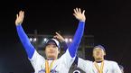 19일 잠실 구장에서 벌어진 한국시리즈 4차전서 삼성이 두산에 10-1로 대승, 4전 전승으로 우승을 차지했다. 오승환(왼쪽)과 배영수가 팬들을 향해 인사를 하고 있다./잠실=주지영 기자 jj0jj0@osen.co.kr [Copyright ⓒ OSEN(www.osen.co.kr) 무