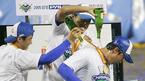 19일 잠실 구장에서 벌어진 한국시리즈 4차전서 삼성이 두산에 10-1로 대승, 4전 전승으로 우승을 차지했다. 한국시리즈 MVP가 된 오승환에게 선배 투수들이 샴페인 세례를 퍼붓고 있다./잠실=손용호 기자 [Copyright ⓒ OSEN(www.osen.co.kr