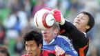 23일 수원 월드컵구장에서 벌어진 수원 삼성과 FC 서울의 경기서 전반 수원의 골키퍼 이운재가 서울 정조국(왼쪽)과 수원 수비수 마토에 앞서 펀칭으로 공을 걷어내고 있다./수원=손용호 기자 spjj@osen.co.kr [Copyright ⓒ OSEN(www.osen.co.