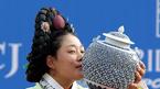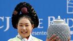 30일 제주의 CJ 나인브릿지 골프코스에서 끝난 CJ 나인브릿지클래식서 이지영이 3라운드 합계 5언더파로 우승을 차지했다. 한복 차림으로 시상식에 나온 이지영이 우승컵을 들어 보이고 있다./제주=손용호 기자spjj@osen.co.kr [Copyrigh