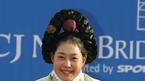 30일 제주의 CJ 나인브릿지 골프코스에서 벌어진 CJ 나인브릿지클래식 최종 3라운드서 이지영이 종합 5언더파로 우승을 차지했다. 시상식을 위해 한복으로 갈아입은 이지영이 수줍은 듯한 미소를 띠며 식장으로 걸어나오고 있다.