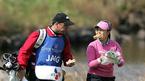 30일 제주의 CJ 나인브릿지 골프코스에서 끝난 미LPGA투어 CJ 나인브릿지클래식서 첫날부터 선두에 나선 이지영이 3라운드 합계 5언더파로 우승을 차지했다. 장정이 9번홀에서 캐디와 함께 샌드위치를 먹으며 이동하고 있다./제주=