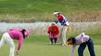 30일 제주의 CJ 나인브릿지 골프코스에서 끝난 미LPGA투어 CJ 나인브릿지클래식서 첫날부터 선두에 나선 이지영이 3라운드 합계 5언더파로 우승을 차지했다. 최종 18번홀에서 이지영(가운데)이 김미현(오른쪽)과 장정이 마킹을 하