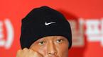 3일 서울 논현동 임피리얼 팰리스 호텔에서 K-1 코리아 맥스 & 히어로스 대회 참가자의 개별 인터뷰가 열렸다. 재일동포 유도 선수 출신으로 이번 히어로스 대회 한국팀 주장을 맡은 추성훈이 손을 볼에 대고 질문에 답하고 있다