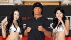 3일 서울 논현동 임피리얼 팰리스 호텔에서 K-1 코리아 맥스 & 히어로스 대회 참가자의 개별 인터뷰가 열렸다. 재일동포 유도 선수 출신으로 이번 히어로스 대회 한국팀 주장을 맡은 추성훈이 K-1걸들과 포즈를 취하고 있다./주지