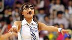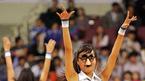 4일 안양 실내체육관에서 벌어진 2005~2006 KCC 프로농구 안양 KT&G와 전주 KCC의 경기 도중 치어리더가 우스꽝스러워 보이는 장구를 얼굴에 착용하고 플로어에 나와 관중들의 흥을 돋우고 있다./안양=주지영 기자 jj0jj0@osen.co.kr [Copyri