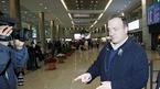 딕 아드보카트 축구대표팀 감독이 유럽파 선수들의 경기 관전 및 전지훈련 준비 출장을 마치고 4일 네덜란드항공편으로 귀국했다. 귀국 인터뷰에서 아드보카트 감독이 통역 박일기 씨를 통해 기자들의 질문 내용을 전달받고 있