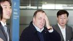 딕 아드보카트 축구대표팀 감독이 유럽파 선수들의 경기 관전 및 전지훈련 준비 출장을 마치고 4일 네덜란드항공편으로 귀국했다. 입국장을 나선 아드보카트 감독이 보도진들을 쳐다보며 얼굴을 매만지고 있다./인천공항=손용