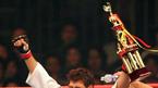 5일 서울 올림픽공원 체조경기장에서 벌어진 K-1 히어로스 2005 서울 대회 제7 경기서 숀 오헤어에 1라운드서 길로틴 초크로 KO승을 거둔 김민수가 트로피를 들고 좋아하고 있다./올림픽공원=손용호 기자spjj@osen.co.kr [Copyright ⓒ OSEN(