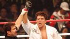 5일 서울 올림픽공원 체조경기장에서 벌어진 K-1 히어로스 2005 서울 대회 제2 경기서 1라운드서 야마모토 아쓰시에게 일방적으로 몰렸던 김종만이 2라운드서 파운딩으로 상대를 실신시키며 승리를 거둔 뒤 환호하고 있다./올림
