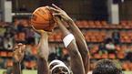 5일 잠실학생체육관에서 벌어진 2005~2006 KCC 프로농구 서울 삼성과 서울 SK의 경기서 삼성의 새 용병 올루미데 오예데지(가운데)가 골밑슛을 쏘는 순간 뒤에서 SK의 웨슬리 윌슨이 슛블록을 시도하고 있다./잠실학생체=주지영 기자