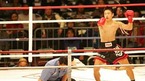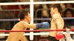 5일 서울 올림픽공원 체조경기장에서 벌어진 K-1 코리아 맥스 2005 대회 제3 경기서 '외팔이' 최재식(오른쪽)의 왼손 돌려치기를 맞은 일본의 긴지가 주먹을 허공에 휘드르며 무너지고 있다. 1라운드 2분 5초만에 최재식의 간단한 KO