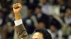 5일 서울 올림픽공원 체조경기장에서 벌어진 K-1 코리아 맥스 2005 대회 제3 경기서 일본의 긴지에 1라운드 2분 5초만에 KO승을 거둔 '외팔이' 최재식이 로프에 올라가 관중들을 향해 손키스를 보내고 있다./올림픽공원=손용호 기자