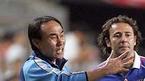 6일 광양 전용구장에서 벌어진 전남 드래곤즈와 인천 유나이티전 하프타임에 전남 김태영의 은퇴식이 열렸다. 스타팅 멤버로 나와 후반 11분께 교체돼 나온 김태영이 경기 종료 후 황선홍 코치의 품에서 눈물을 흘리고 있다./광