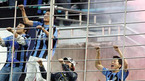 6일 광양 전용구장에서 벌어진 전남 드래곤즈와 인천 유나이티전서 후반 라돈치치의 페널티킥 성공으로 인천이 1-0으로 앞서 나가자 서포터스들이 철골 구조물에 매달려 좋아하고 있다./광양=손용호 기자spjj@osen.co.kr [Copyright ⓒ