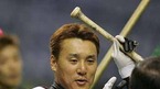 오는 10일 코나미컵 아시아시리즈 2005 대회 첫날 삼성 라이온스와 대결할 롯데 마린스의 이승엽이 8일 오후 경기가 열릴 도쿄돔에서 가진 훈련 도중 배트를 거꾸로 들고 스윙 포즈를 취해보고 있다./도쿄돔=손용호 기자spjj@osen.co