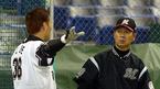 오는 10일 코나미컵 아시아시리즈 2005 대회 첫날 삼성 라이온스와 대결한 롯데 마린스의 이승엽이 8일 오후 경기가 열릴 도쿄돔에서 가진 팀 훈련 도중 김성근 코디네이터와 이야기를 나누고 있다./도쿄돔=손용호 기자 spjj@osen.co