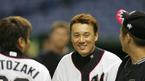 오는 10일 코나미컵 아시아시리즈 2005 대회 첫날 삼성 라이온스와 대결할 롯데 마린스의 이승엽이 8일 오후 경기가 열릴 도쿄돔에서 가진 팀 훈련 도중 포수 사토자키(왼쪽) 등 동료들과 밝은 표정으로 대화를 나누고 있다. /도쿄