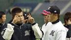 10일 개막될 코나미컵 아시아시리즈 2005 대회에 대비한 각 팀의 훈련이 9일 도쿄돔에서 실시됐다. 롯데 마린스의 이승엽이 일본시리즈에서 MVP를 다퉜던 이마에와 얘기를 나누고 있다. /도쿄돔=손용호 기자 spjj@osen.co.kr [Copyright ⓒ