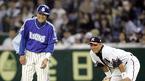 10일 일본 도쿄돔에서 개막된 코나미컵 아시아시리즈 2005대회 삼성과 롯데 마린스의 경기는 롯데 마린스의 6-2 승리로 끝났다. 내야땅볼로 아웃된 박진만에게 이승엽이 말을 건네며 덕아웃으로 돌아가고 있다. /도쿄돔=손용호