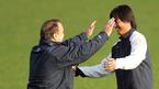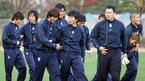 오는 12일 스웨덴 및 16일 세르비아-몬테네그로와 친선경기를 가질 한국대표팀이 11일 오후 상암 월드컵경기장 보조구장에서 전술 훈련을 실시했다. 아드보카트 감독이 홍명보 코치와 서로 웃으면서 어깨를 두드리고 있다. /주지