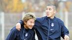 12일 스웨덴 및 16일 세르비아-몬테네그로와 친선경기를 가질 한국대표팀이 11일 오후 상암 월드컵경기장 보조구장에서 전술 훈련을 실시했다. 훈련이 끝난뒤 차두리가 이천수에게 어깨동무를 하며 걸어 나오고 있다. /주지영 기