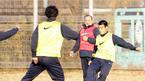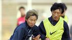 오는 12일 스웨덴 및 16일 세르비아-몬테네그로와 친선경기를 가질 한국대표팀이 11일 오후 상암 월드컵경기장 보조구장에서 전술 훈련을 실시했다. 훈련이 끝난 뒤 고려대 선배인 차두리가 이천수에게 헤드록을 건 채 걸어가고