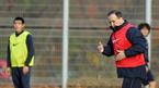 오는 12일 스웨덴 및 16일 세르비아-몬테네그로와 친선경기를 가질 한국대표팀이 11일 오후 상암 월드컵경기장 보조구장에서 전술 훈련을 실시했다. 아드보카트 감독이 직접 공을 차며 시범을 보이고 있다. /주지영 기자 jj0jj0@osen