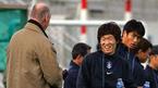 오는 12일 스웨덴 및 16일 세르비아-몬테네그로와 친선경기를 가질 한국대표팀이 11일 오후 상암 월드컵경기장 보조구장에서 전술 훈련을 실시했다. 아드보카트 감독이 박주영이 훈련하는 모습을 뒤에서 지켜보고 있다./주지영