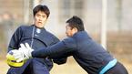 오는 12일 스웨덴 및 16일 세르비아-몬테네그로와 친선경기를 가질 한국대표팀이 11일 오후 상암 월드컵경기장 보조구장에서 전술 훈련을 실시했다. 간이 연습 게임 중 설기현이 슛하려는 순간 이운재가 볼을 막고 있다./주지영