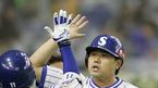 12일 도쿄돔에서 열린 코나미컵 아시아시리즈 2005 예선 마지막 날 삼성 라이온즈-싱농 불스전은 삼성이 4-3으로 신승했다. 1회말 김대익의 희생플라이 때 홈을 밟은 양준혁이 김대익과 하이파이브를 나누고 있다./도쿄돔=손용호