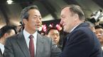 12일 저녁 서울 상암 월드컵경기장에서 벌어진 한국-스웨덴의 친선경기에 앞서 정몽준 대한축구협회장이 라르스 라거백 스웨덴 감독과 인사를 나누고 있다./상암=주지영 기자 jj0jj0@osen.co.kr [Copyright ⓒ OSEN(www.osen.co.kr) 무단전재