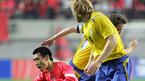 12일 저녁 서울 상암 월드컵경기장에서 벌어진 한국-스웨덴 친선경기는 2-2 무승부로 끝났다. 설기현이 스웨덴의 미카엘 도르신의 방해를 받으며 볼을 드리블하고 있다. /상암=주지영 기자 jj0jj0@osen.co.kr [Copyright ⓒ OSEN(www.osen.co.k