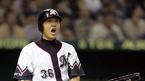 13일 일본 도쿄돔에서 펼쳐진 코나미컵 아시아시리즈 2005 삼성과 롯데 마린스의 결승전서 롯데가 5-3으로 승리했다. 3회말 롯데의 이승엽이 삼성 선발 투수 배영수에게 헛스윙으로 1회에 이어 삼진을 당하고 있다./도쿄돔=손용호