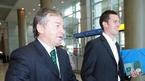 오는 16일 한국과 친선경기를 가질 세르비아-몬테네그로 대표팀이 14일 낮 인천공항을 통해 입국했다. 일리야 페트코비치 감독이 세르비아-몬테네그로 축구협회 직원의 영어 통역으로 한국 기자들과 인터뷰하고 있다./인천공항