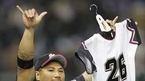 16일 세르비아-몬테네그로와의 친선경기에 앞서 한국대표팀이 15일 오전 서울 홍은동 그랜드 힐튼 호텔에서 합동 인터뷰를 가졌다. 인터뷰를 마친 이영표가 팬이 준비한 유니폼에 사인해 주고 있다./주지영 기자 jj0jj0@osen.co.kr [Co