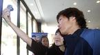 16일 세르비아-몬테네그로와의 친선경기에 앞서 한국대표팀이 15일 오전 서울 홍은동 그랜드 힐튼 호텔에서 합동 인터뷰를 가졌다. 인터뷰를 마친 박지성이 팬들과 함께 사진을 찍고 있다./주지영 기자 jj0jj0@osen.co.kr [Copyright ⓒ